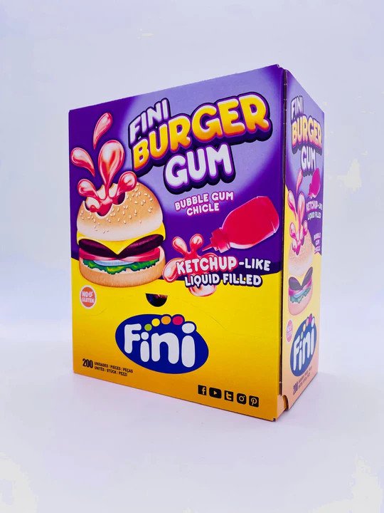 Chewing-gum Burger Fini avec sauce Ketchup! Boules de chewing-gum avec un liquide citrique rouge