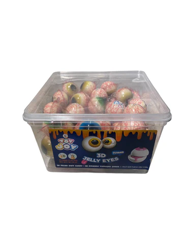 Confiserie en forme de globe oculaire, avec un cœur liquide acidulé.